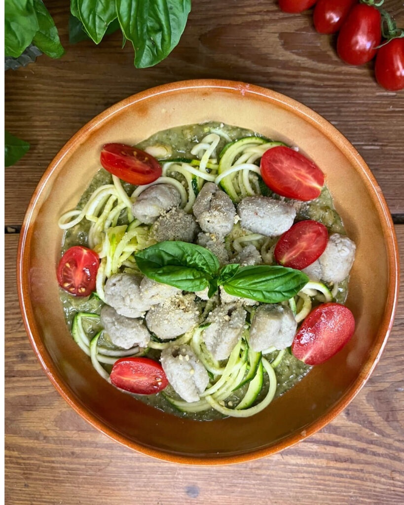 Egy tápláló, melengető és krémes olaszos tál, amit a tavaszi szezon zöldjei ihlettek: cukkini pesztós polenta ropogós tofuval a tetején. Ez az étel megmutatja, mennyire izgalmas és finom lehet a