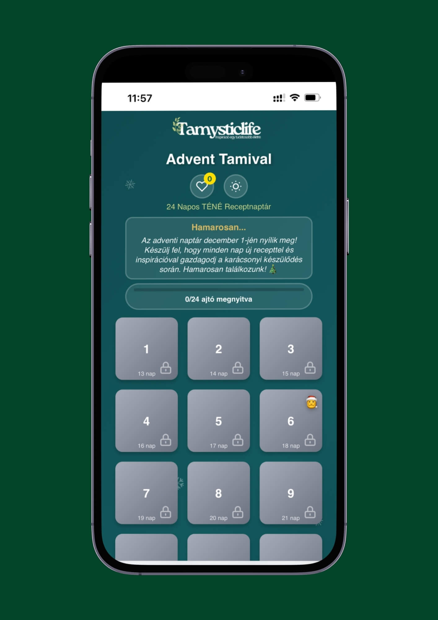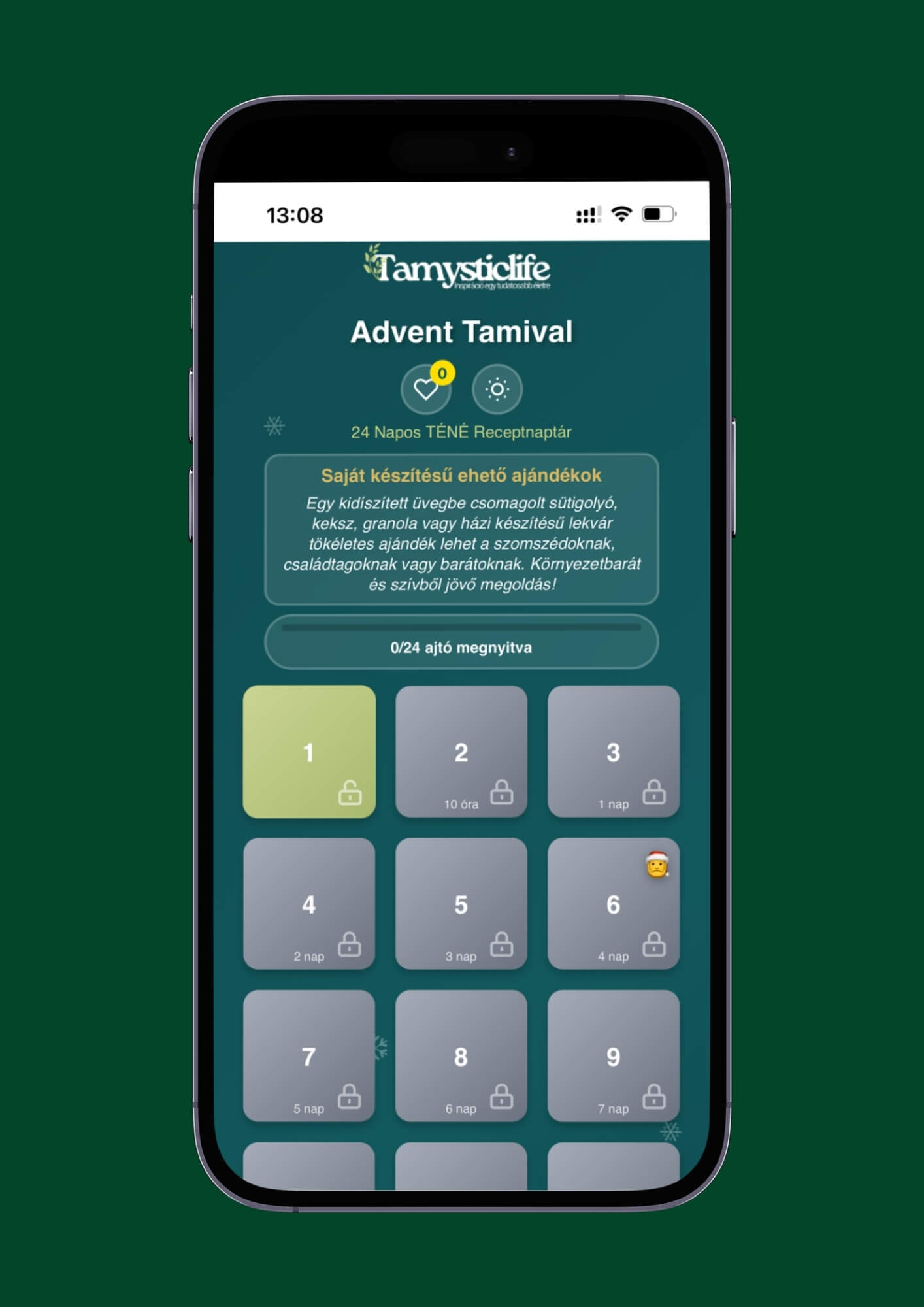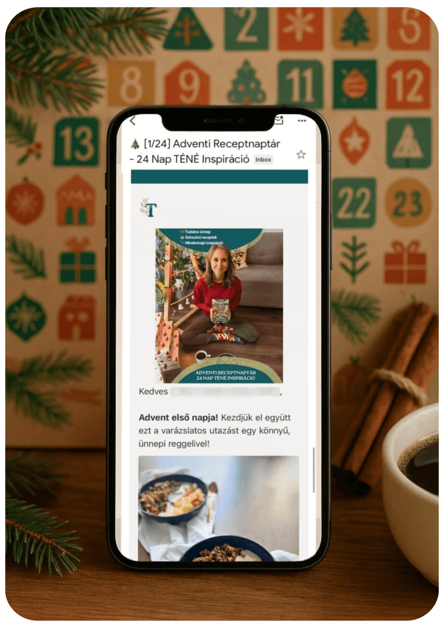 Az emailes recepteken felül elérhető lesz egy igazi digitális adventi naptár élmény is! Telefonon, tableten vagy laptopon – bárhol, bármikor – minden nap kinyithatsz egy új ablakot, pont mint egy hagyományos adventi naptárban. Kattints, fedezd fel a napi receptet, és éld át az adventi várakozás varázsát digitálisan!