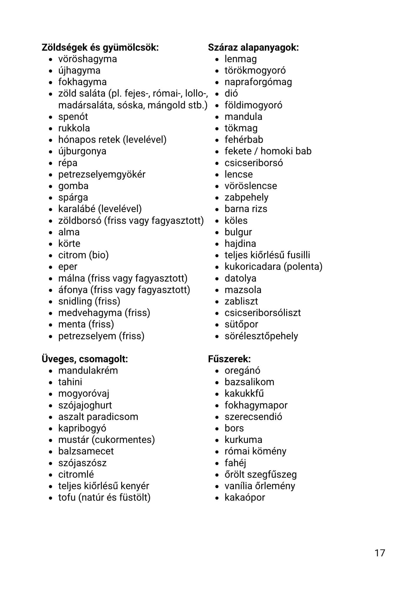 - – Alapanyaglista a bevásárláshoz