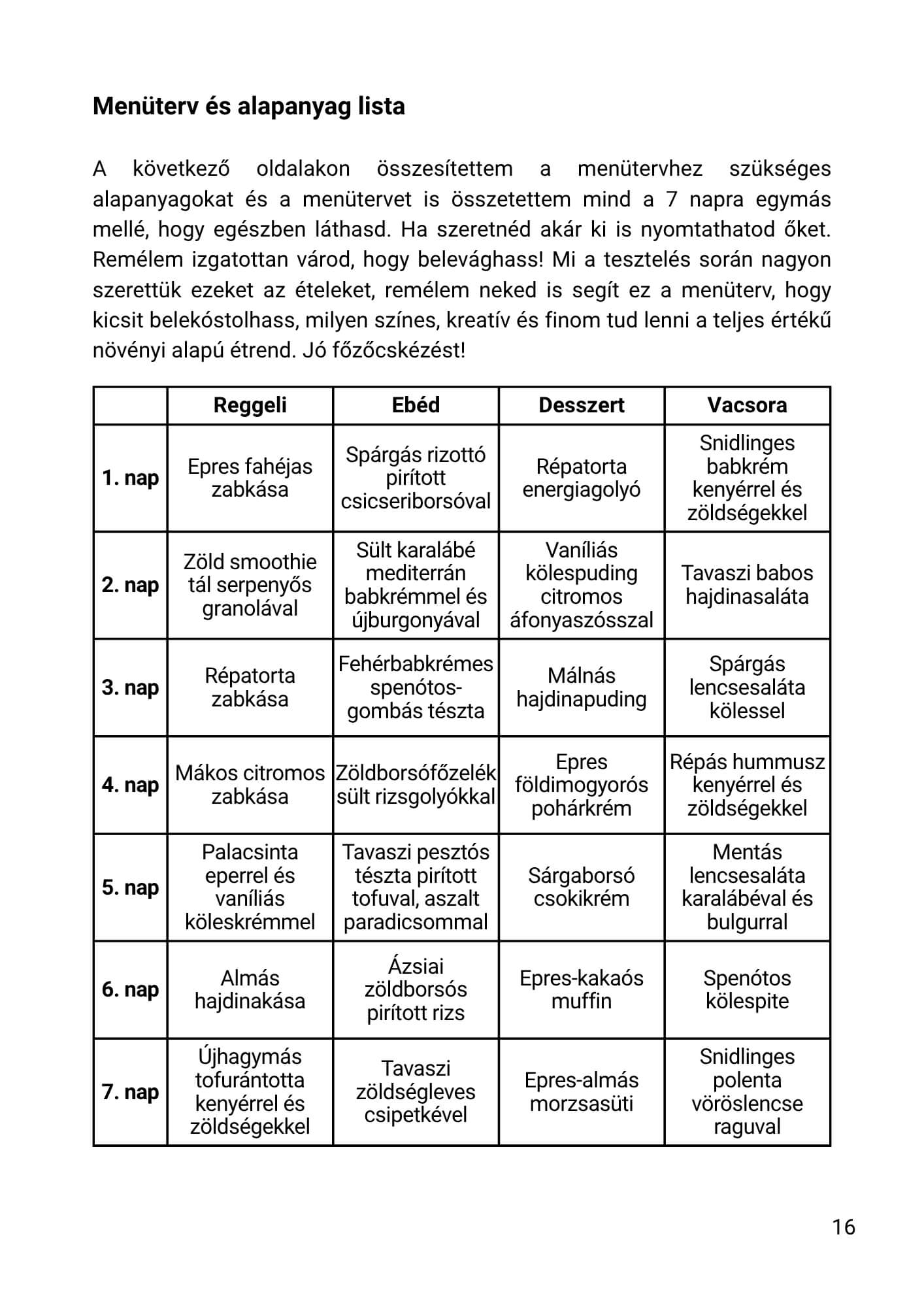 Plusz egy alapanyaglista a bevásárláshoz, hogy ne kelljen külön kitalálnod.