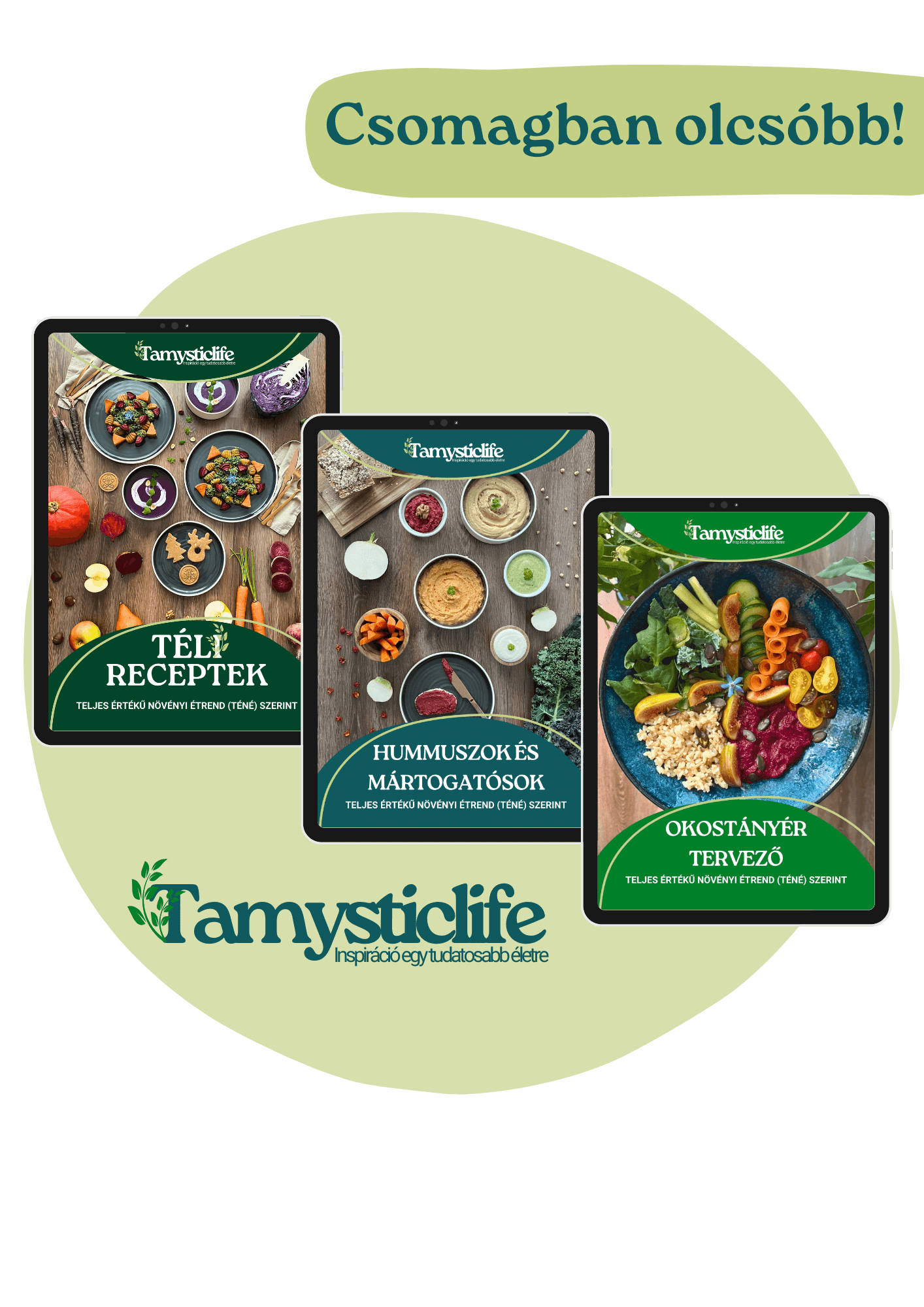 3 termék egyben! Szerezd meg az Okostányér Tervező, a Hummuszok és Mártogatósok és a Téli receptek – Teljes értékű növényi étrend (TÉNÉ) szerint e-könyveimet egyben! Indítsd egészséges receptekkel az idei Veganuárt!