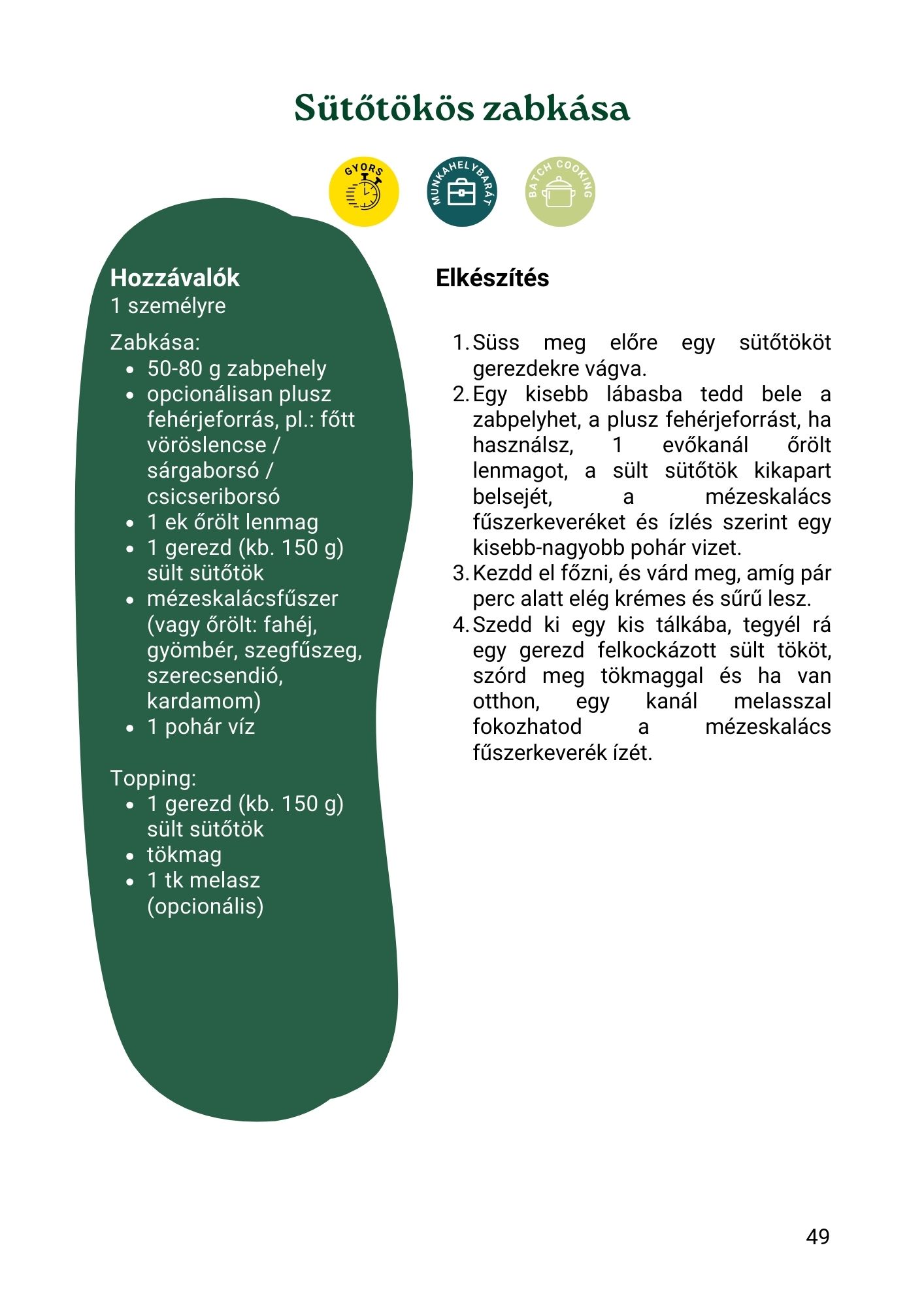 Az okostányér modell szerint hozok 21 recept inspirációt, amik közt szerepel 6 reggeli és 15 ebéd és vacsora ötlet. Az arányokhoz pedig képzeld magad elé a felosztott tányért! Legyen rajta annyi hüvelyes, amennyi gabona, a zöldségek pedig adják a tányér felét. Sőt, egy sor alternatív alapanyagot is bemutatok, szóval, ha van benne olyan alapanyag, ami számodra nehezen beszerezhető, vagy nem kedveled, cseréld le bátran valami másra – például ebből az összeállított listádból.