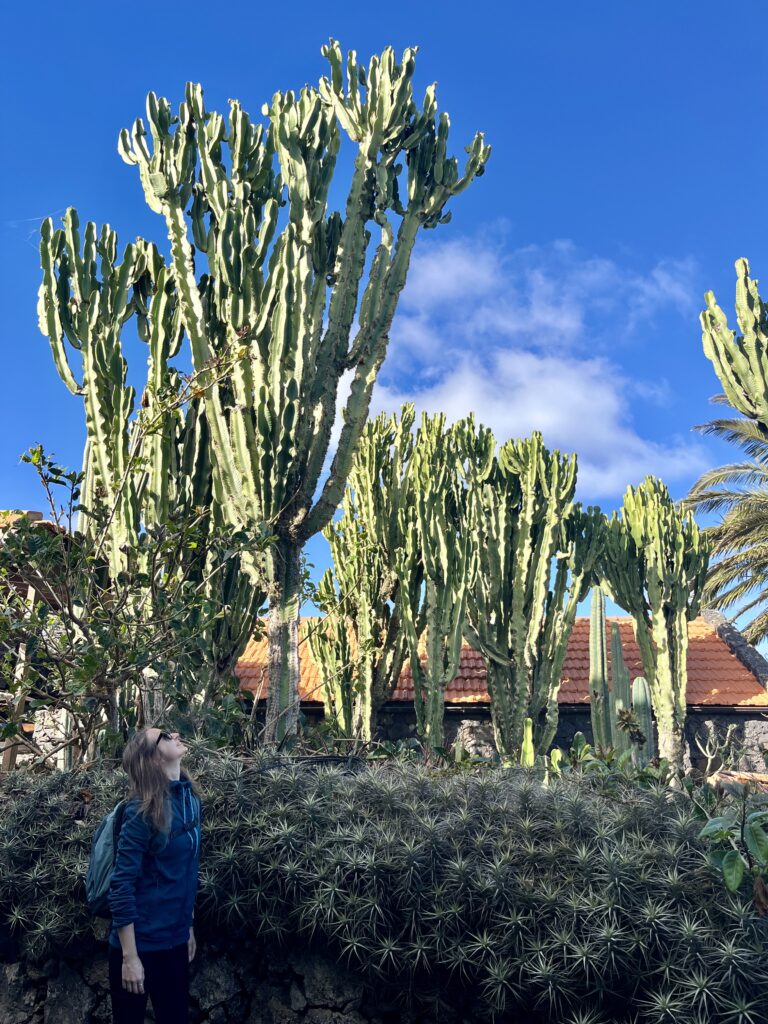 Az egyik kedvenc élményem pedig egy napfelkelte nézős kaland volt. Amikor reggelre vissza kellett vinnünk a bérelt autót, kitaláltuk, hogy előtte még megnézzük a napfelkeltét a tengerparton. Mire odaértünk, szemerkélni kezdett az eső, és a felhők teljesen eltakarták a nap elől az eget. Ezért úgy döntöttünk, hogy inkább egy magasabb pontra megyünk, hátha onnan többet látunk belőle. Útközben hol esett és a felhőben, ködben mentünk, hol pedig tiszta időnk volt. Végül Valverde egyik utcáján ért minket a napfelkelte és szerencsére itt vékonyabb felhők mögött ragyogóan lehetett látni – miközben az utca másik végén megint esett az eső. Egészen elképesztő volt, mintha néhány lépésenként más-más évszakba csöppentünk volna.